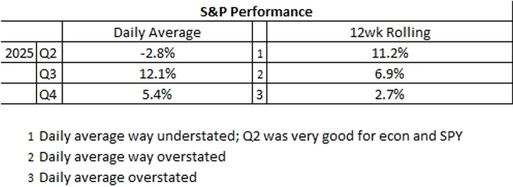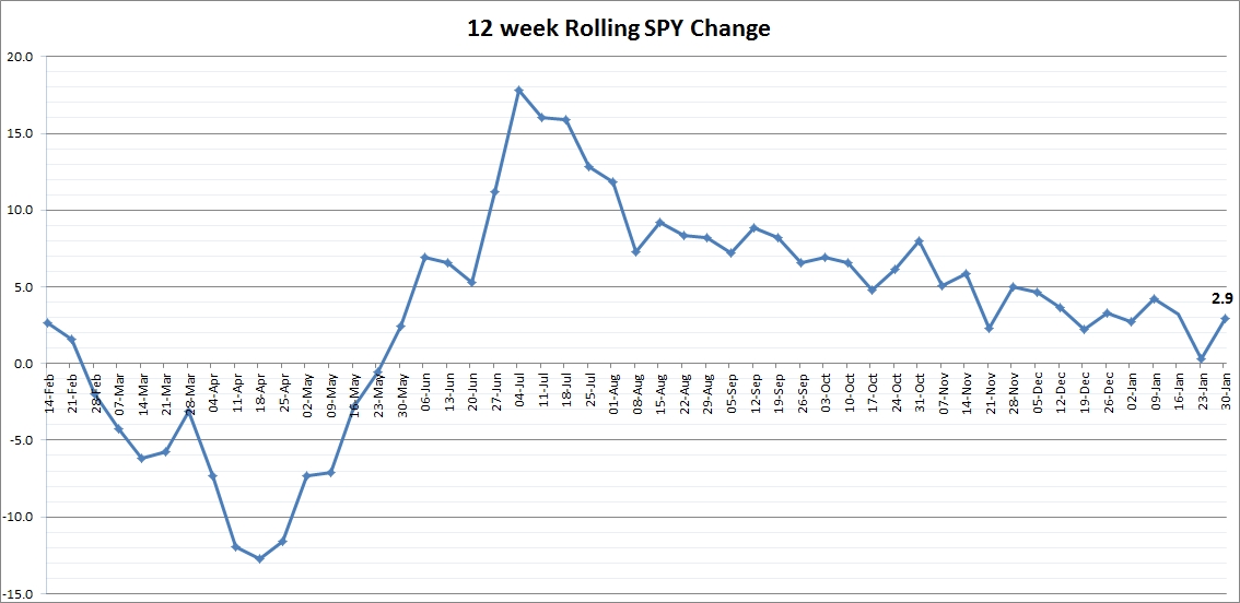 12 week rolling SPY / S&P (wk av) method better than FRED daily average