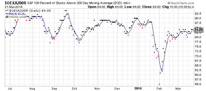 In addition to ROC20, OEX 4 day moving average is also useful to see a turn. For now everything sideways..