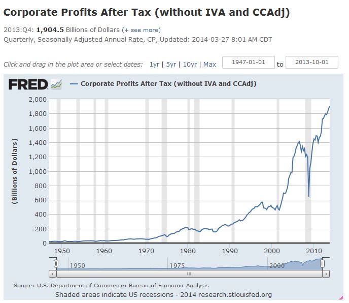 Wages are falling behind corporate profits. The economy is becoming more and more dependent on ‘wealth’ effect and thereby QE.