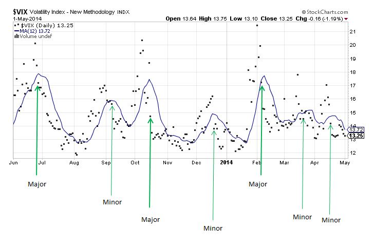 It seems VIX runs between 13 and 17. The sell zone would be below 13 and the buy zone above 17. The next major rebound will occur after VIX goes above 17 most likely after it falls below 13.