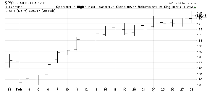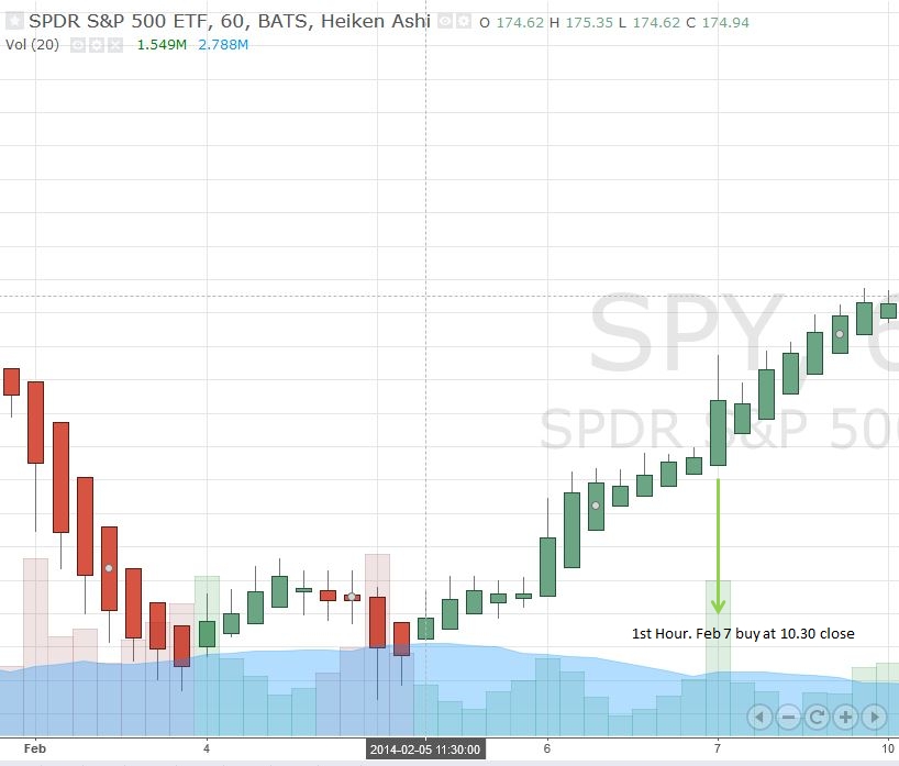 See Feb 2014 below. The buy point would be the open on Feb 6 (174.75) as opposed to open on Feb 7.