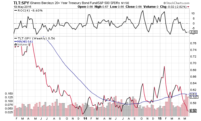 TLT:SPY ratio at bottom end of range