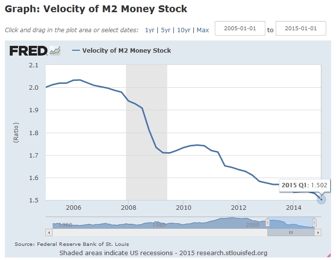 As money velocity keeps falling, the Fed has to drive asset prices higher and higher in order to grow economy.