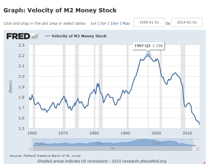 The peak of money velocity was 1997 and since then asset bubbles have been driven higher and higher with no sign of stopping. The 1990s had a significant rise in money velocity. This is all tricklism…since 1997.