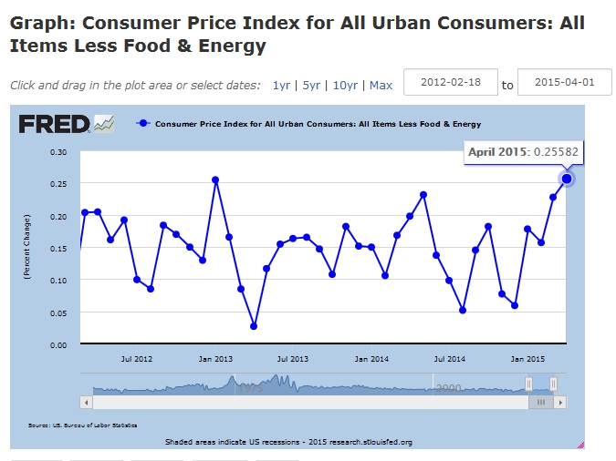 Core inflation highest in 3 years! and more inflation to come with obamacare. Gas prices have also risen so ccpi at 2.0 is very possible on Jun 17 and interest rate rise announcement also possible. Taper 2013 had 3 phases: announcement 1, announcement 2, and implementation.
