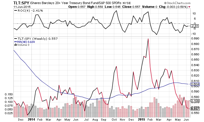 Last April and May TLT:SPY was above the 40 wkma and still of high value this March/April. BUT now it is value again and ready for a surge…