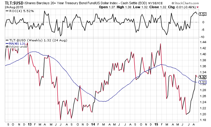 TLT:$USD has X the 40 wkma indicating a change in Fed policy to tightening.
