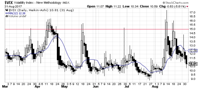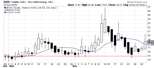 VIX had a sustained 15 in April of 1 week and a smaller one day in August. This case would be ideal for end of December into early Jan.