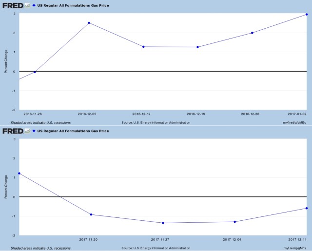 One change is December gas prices this year (2017 bottom) vs last year (top). So this is more evidence that 2018 will be weaker…