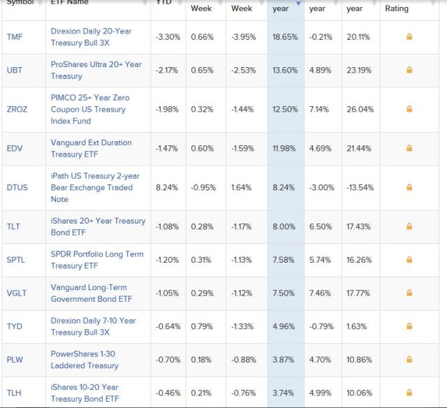 For further reference, here are top performing Treasury Funds 1y performance from above link: