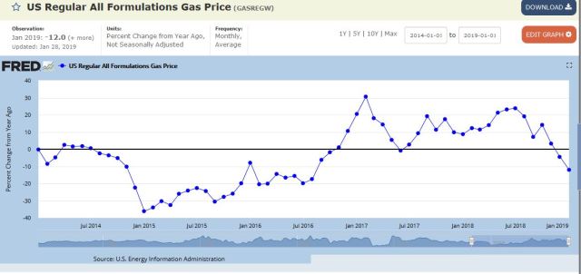 Falling inflation like late 2014 and 2015 indicates weakening growth. Dec 2016 until Nov 2018 were positive showing strengthening economy and rising markets. And now Dec 2018 / Jan 2019 show a weakening growth despite increasing wage growth.