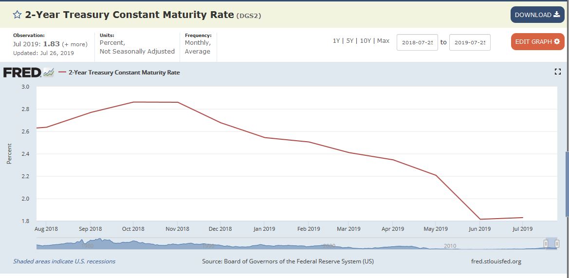 2y Treasury turns up and June inflation surges over last year