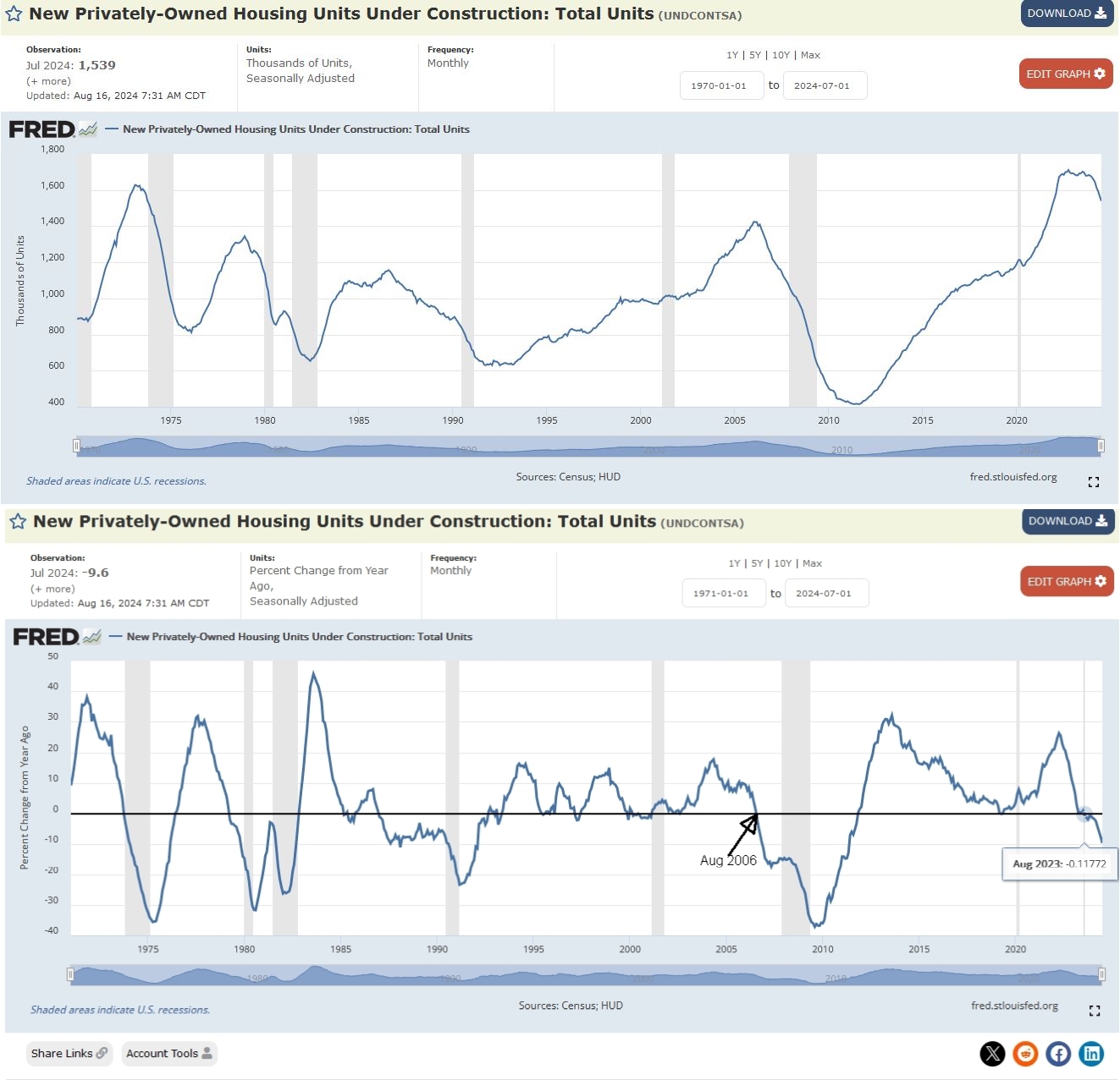 Clearly the biggest housing boom has occurred. Peaks were August 2023 and August 2006.
