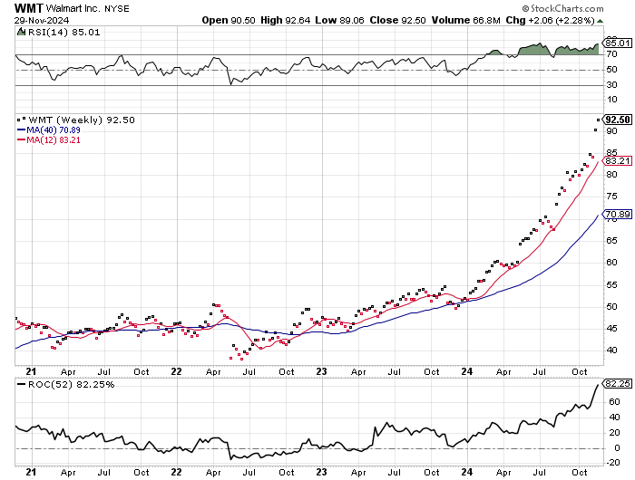 Shoppers switch to WMT to save money. High middle class are also switching. 2021-2022 economy was good…WMT flat. In 2023, WMT started rising and now on-fire in 2024. Economy now weakening fast.