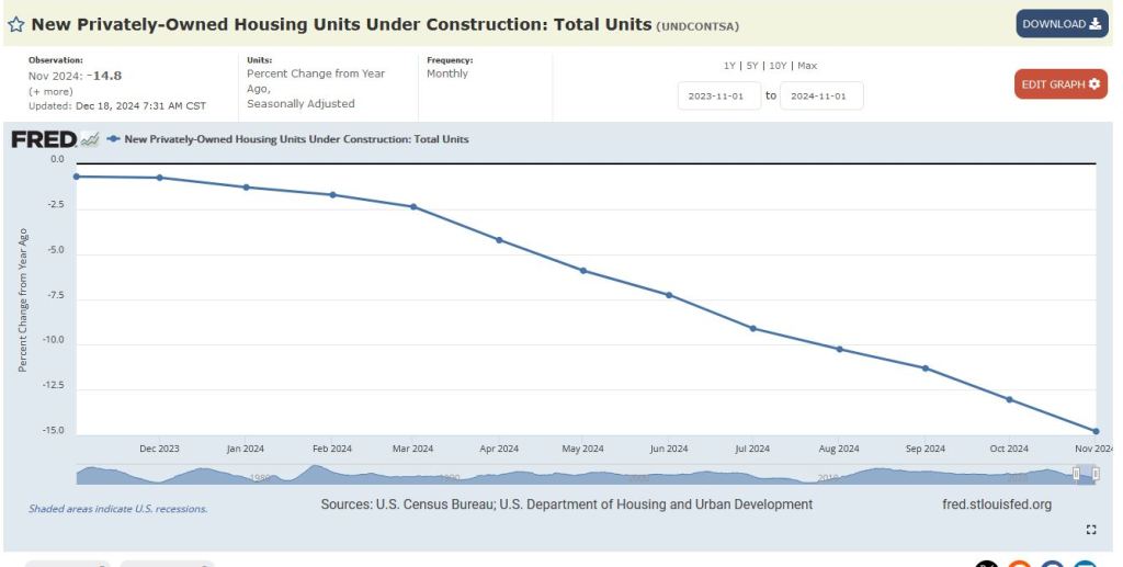 BUT construction continues to fall and rising unemployment 2025 will create a big crisis in late 2025-all through 2026. M1 money supply indicates a drying up of liquidity for 2025.