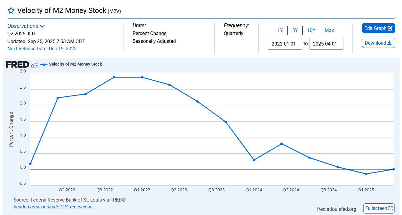 MONEY VELOCITY BOOMED IN 2022…2025 has falling efficiency.