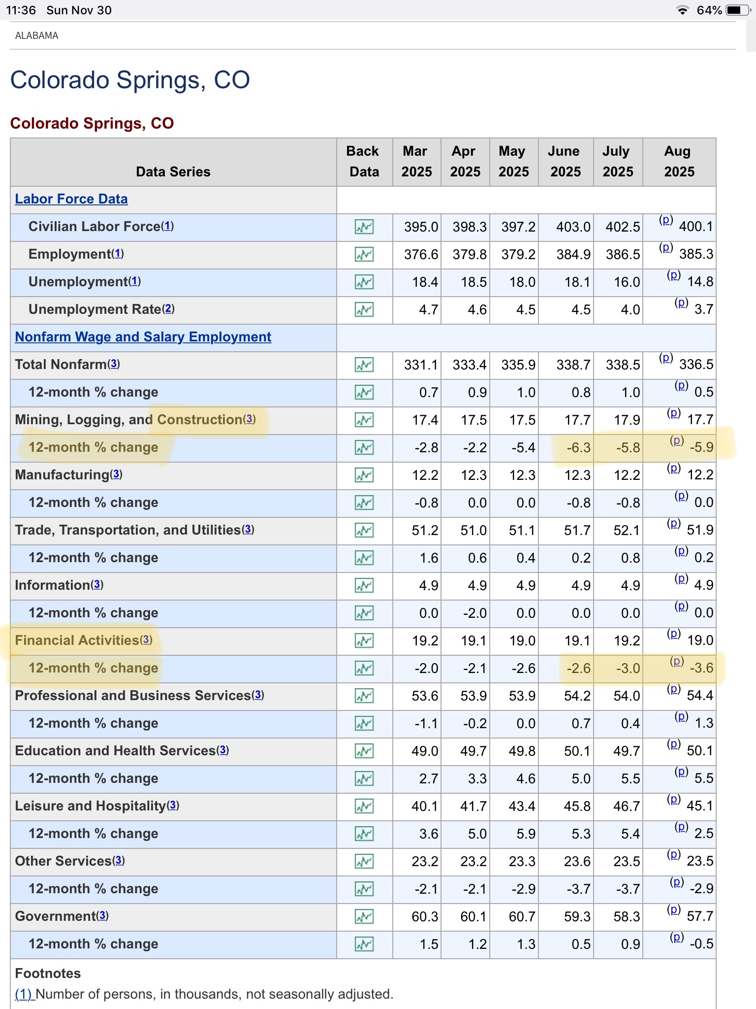 Houston is oil workers and Colorado Springs is real estate finance and construction. It’s clearly not government.