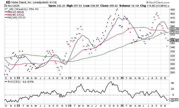 Home Depot down YoY -16% …40 wk X 100 wkma…Last Nov +34%