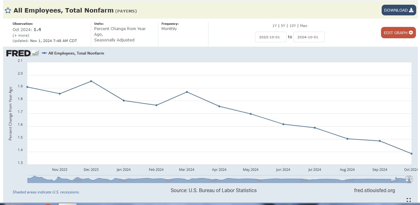 2024-2023 59.8-60.4= -0.6 (based on 330M popn, , -2M jobs)