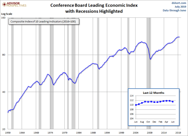In the first half of 2019, the leading economic index increased 0.2 percent (about a 0.4 percent annual rate), significantly slower than the growth of 1.5 percent (about a 2.9 percent annual rate) over the second half of 2018. In addition, the strengths and weaknesses among the leading indicators are now more balanced.