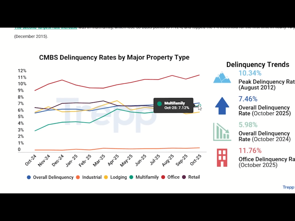 AND multi-family (commercial) rising fast from 3% last year to 7% 2025. Offices are at all time high.