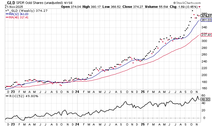 Stocks look like +12% this year so trend next year is +0-2% – GLD to slow down +20%.